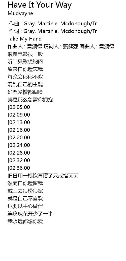 | [00:00.00] | 作曲 : Gray, Martinie, Mcdonough/Tr |