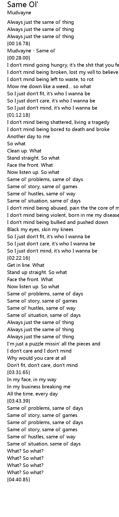 Always just the same ol' thing |