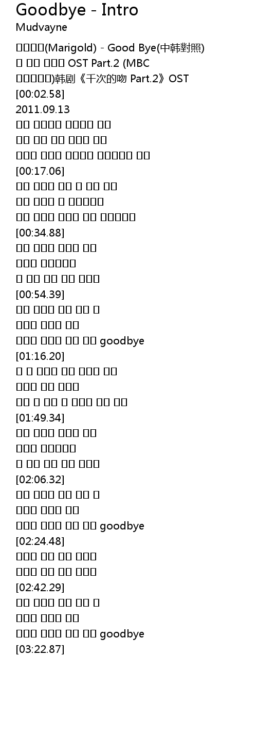 | [00:00.00] | 매리골드(Marigold) - Good Bye(中韩對照) |