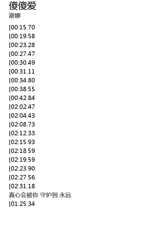 | [02:38.77][02:04.43][00:52.00] | 傻傻爱一个人不管雨天 |