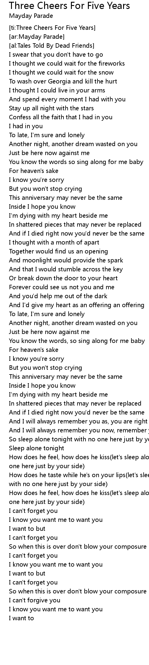 [ti:Three Cheers For Five Years] |