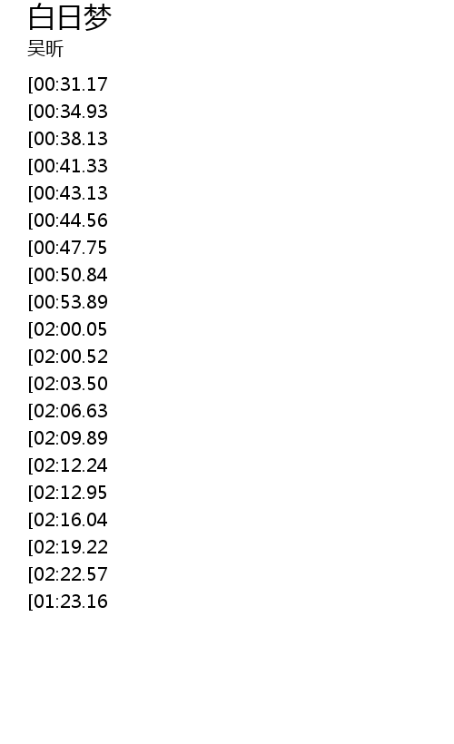 | [02:31.59][02:00.52][00:57.28] | 白日梦不醒来 王子不要太帅 |