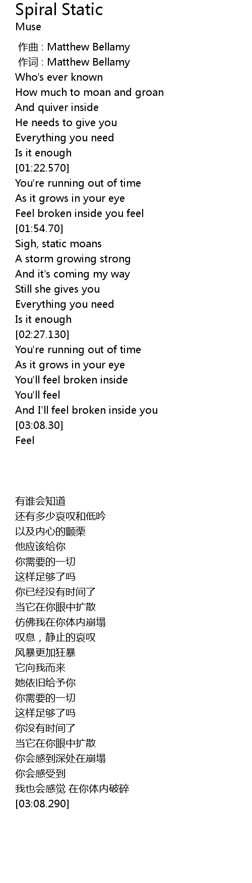 | [00:01.00] | zuò cí : Matthew Bellamy |