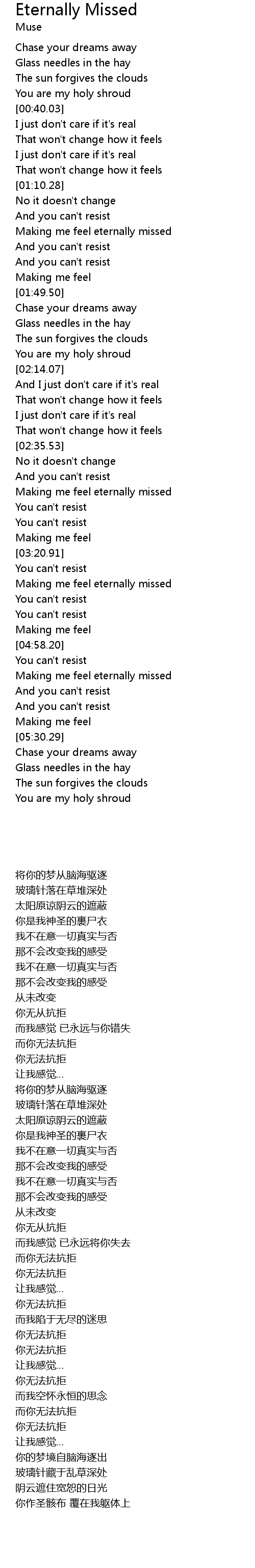 Making me feel eternally missed |