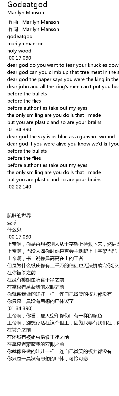 | [00:00.00] | zuo qu : Marilyn Manson |