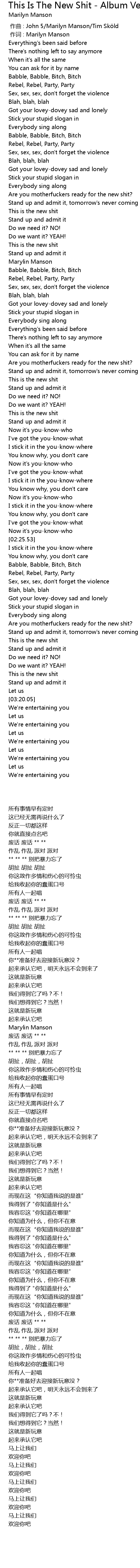 | [00:01.00] | 作词 : Marilyn Manson |