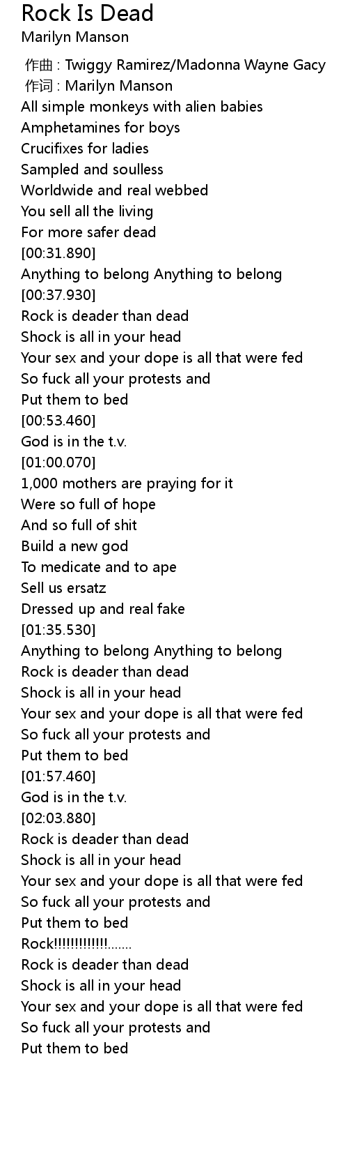 | [00:00.00] | 作曲 : Twiggy Ramirez/Madonna Wayne Gacy |