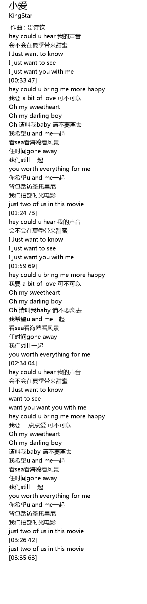 | [02:04.48] | 我要 a bit of love 可不可以 |