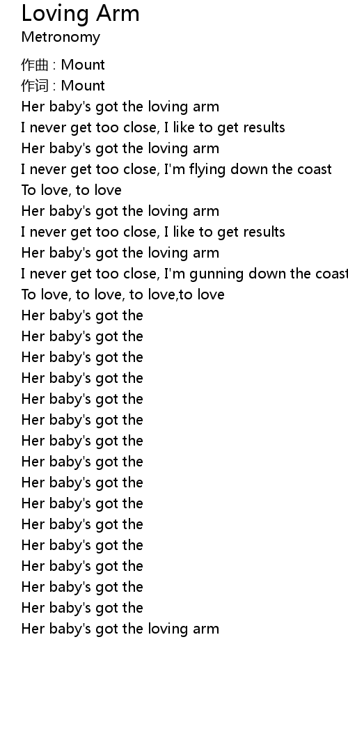 | Her baby' s got the loving arm |