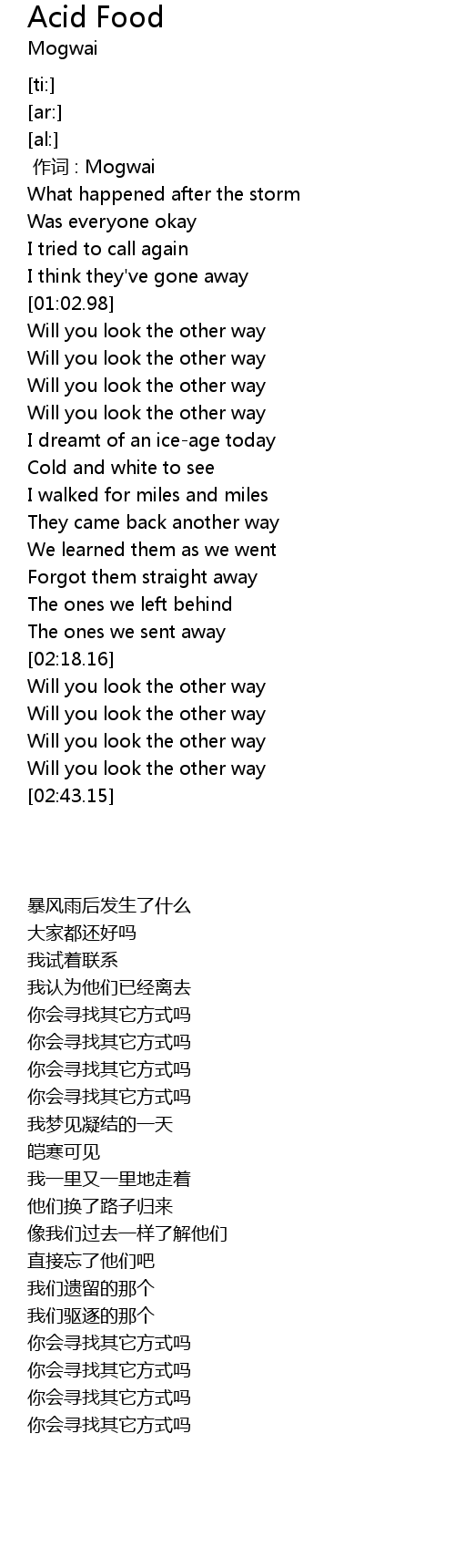 | [02:39.98] | Will you look the other way |