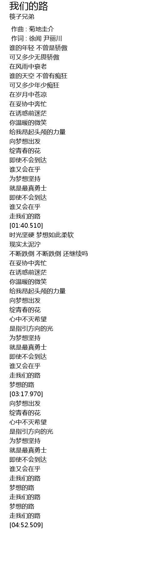 | [02:43.570] | wèi mèng xiǎng jiān chí |