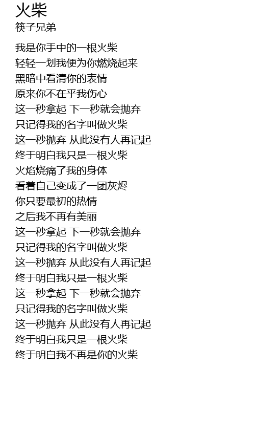 | [04:42.22] | 终于明白我只是一根火柴 |