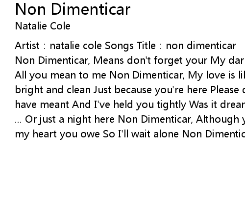 | [00:02.53] | Artist: natalie cole Songs Title: non dimenticar |