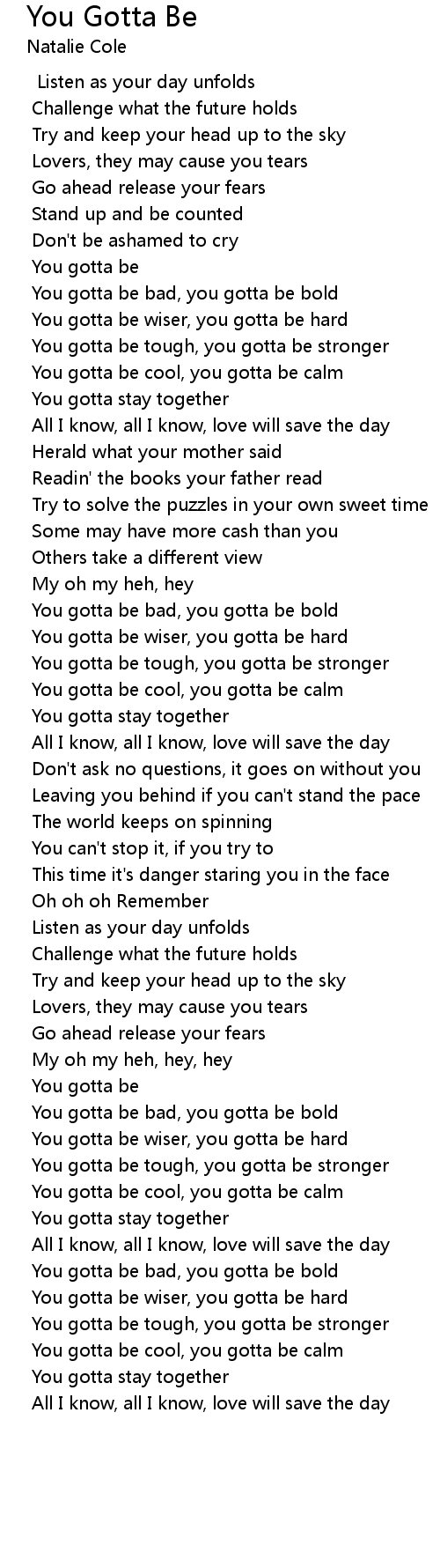You gotta be bad, you gotta be bold |