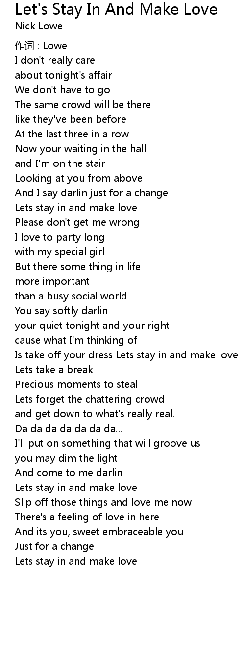 | Lets stay in and make love |