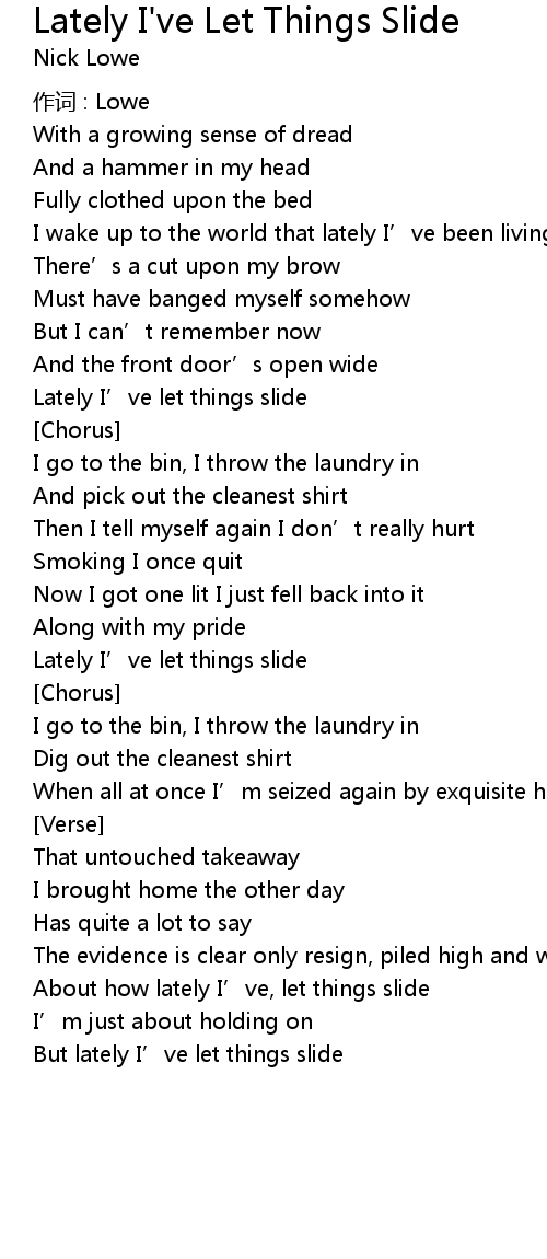 | 歌曲 | Lately I've Let Things Slide |