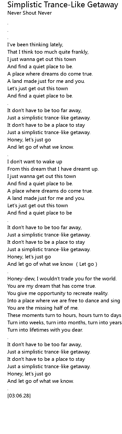 | [01:35.87] | Just a simplistic trancelike getaway. |