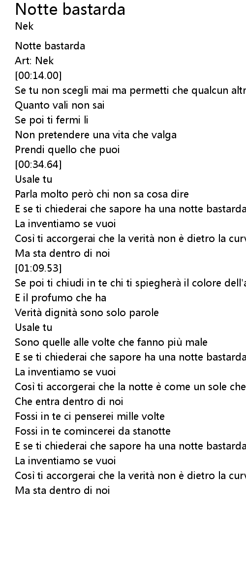 | [01:37.52] | E se ti chiederai che sapore ha una notte bastarda |