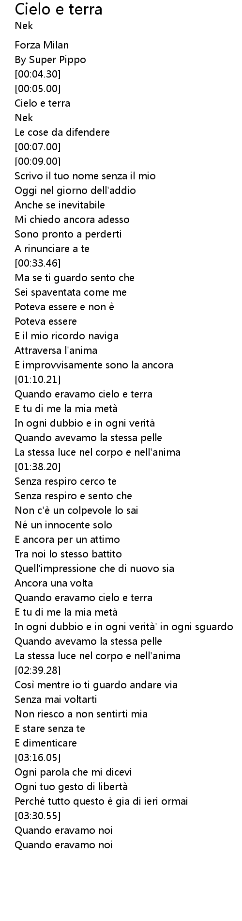 | [02:14.45] | Quando eravamo cielo e terra |