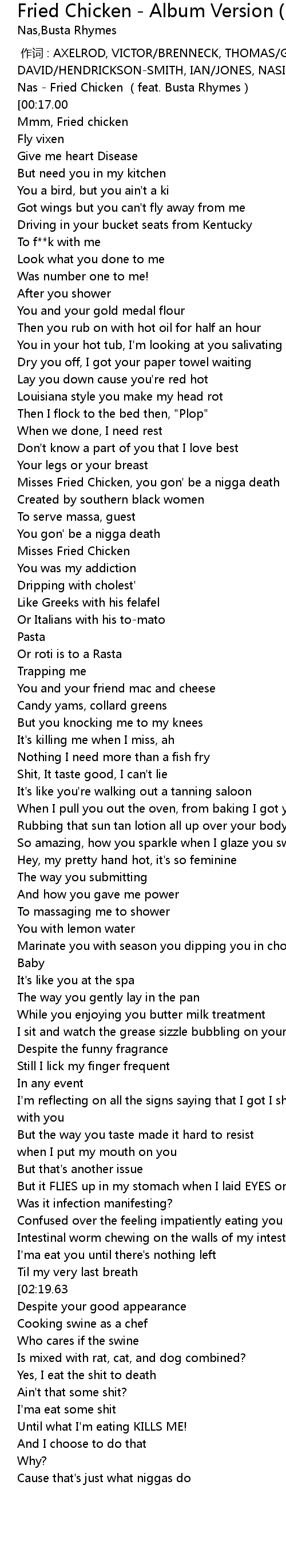 | [00:02.00] | Nas Fried Chicken feat. Busta Rhymes |
