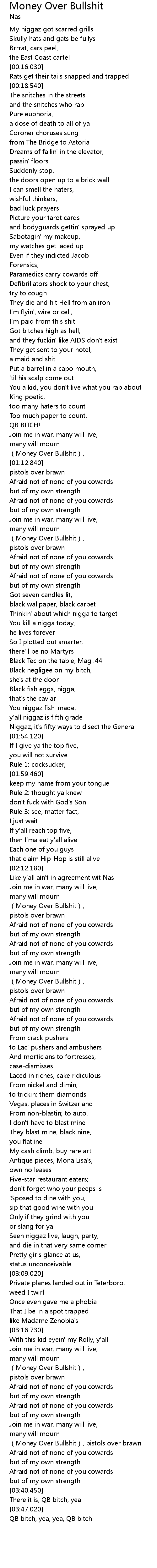 | [03:32.300] | Money Over Bullshit, pistols over brawn |