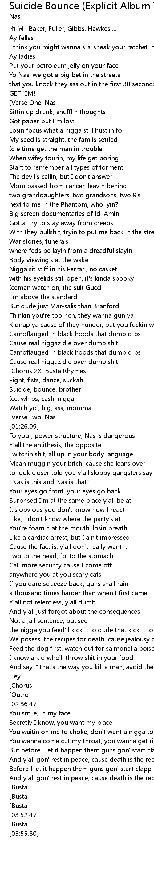 | [03:37.53][Busta] | Suicide, bounce, brother |