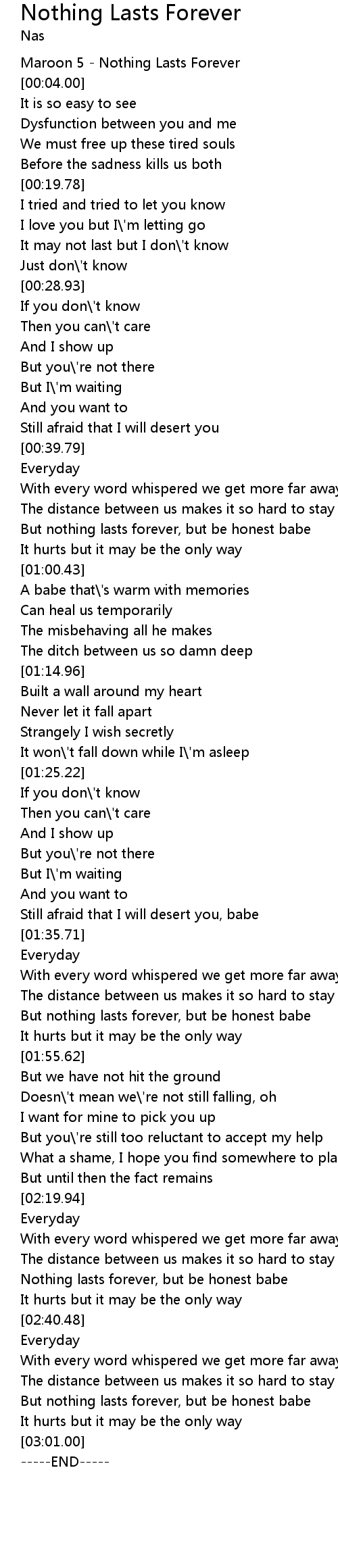 Maroon 5 - Nothing Lasts Forever |