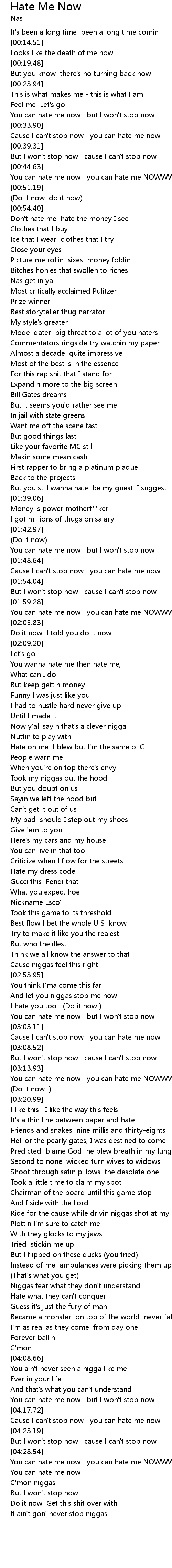 | [01:44.72] | You can hate me now but I won't stop now |