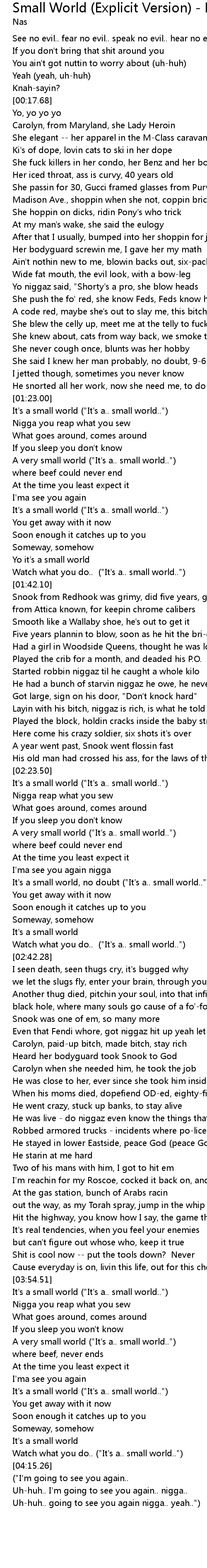 | [02:34.91] | It's a small world, no doubt ("It's a.. small world..") |