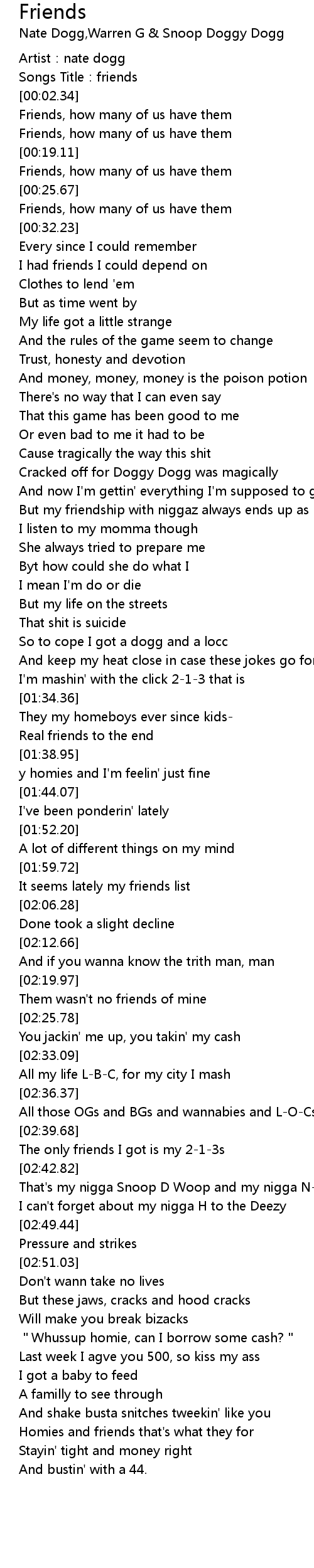 | [03:08.35] | Homies and friends that's what they for |