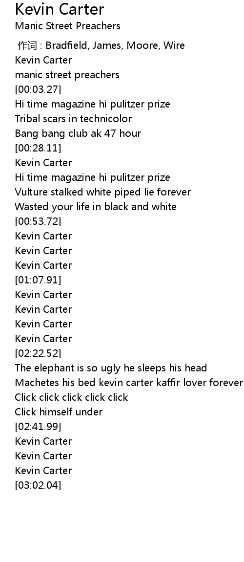 | [02:31.05] | Machetes his bed kevin carter kaffir lover forever |