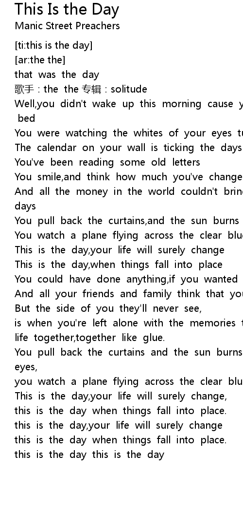 | [02:59.655] | this is the day,your life will surely change |