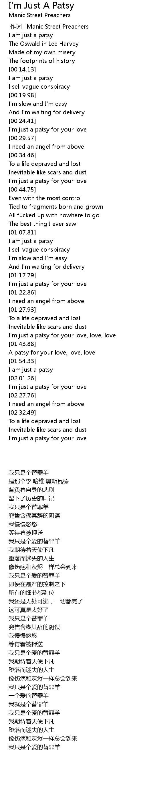 | [01:59.32] | I am just a patsy |