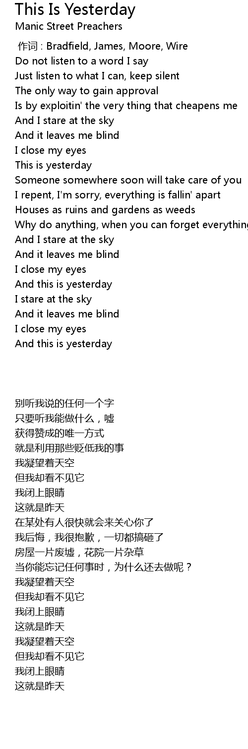 | [01:18.000] | This is yesterday |