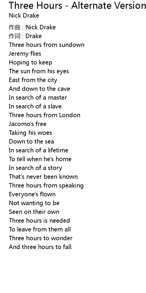 | 歌曲 | Three Hours - Alternate Version |