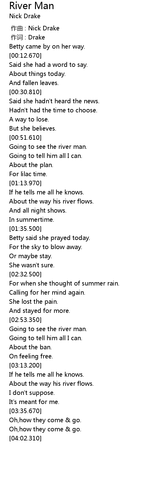 | [00:00.00] | zuò qǔ : Nick Drake |