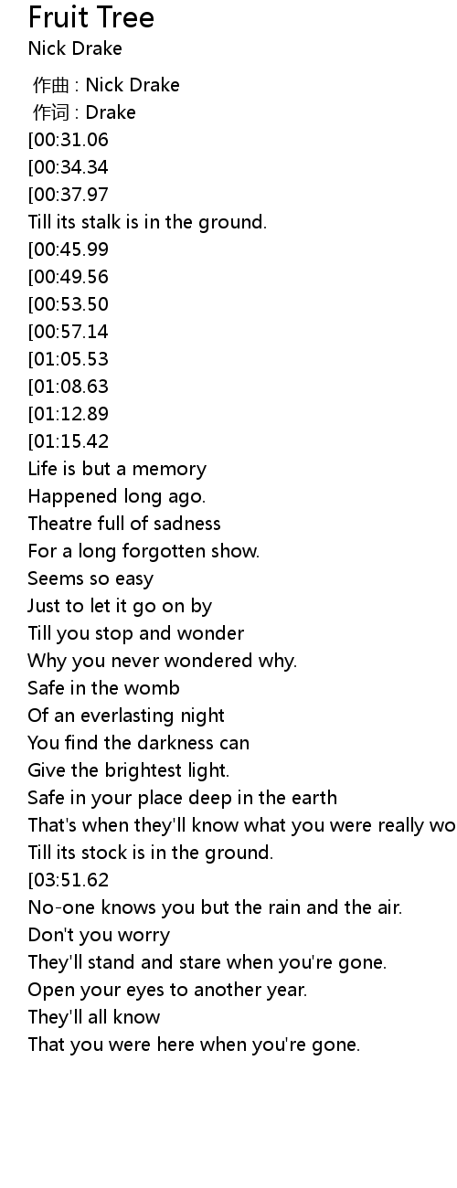 | [04:15.52][03:51.62] | Fruit tree, fruit tree |