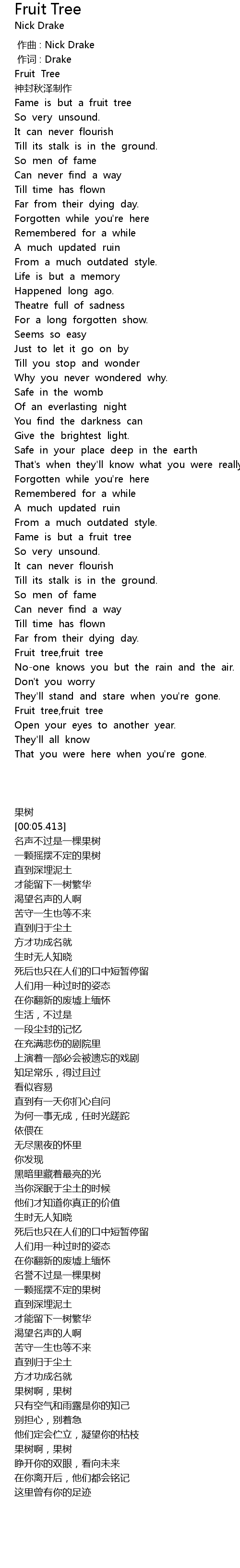 | [00:00.00] | zuò qǔ : Nick Drake |