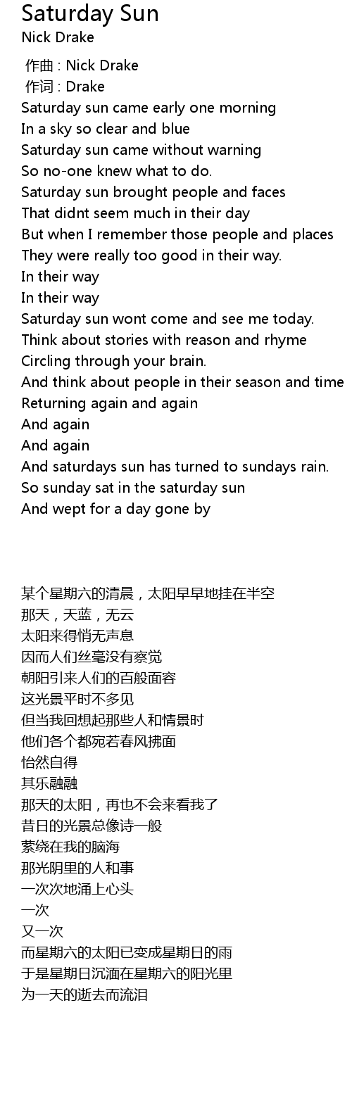 | [02:03.63] | Saturday sun wont come and see me today. |