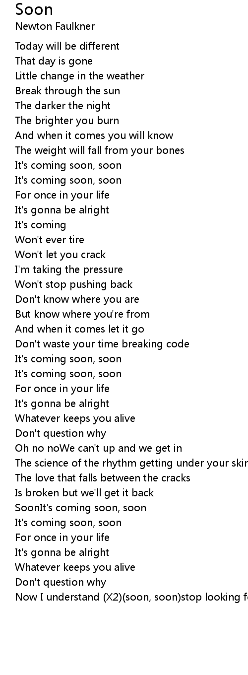Now I understand (X2)(soon, soon)stop looking for a rainy dayyou'll never find