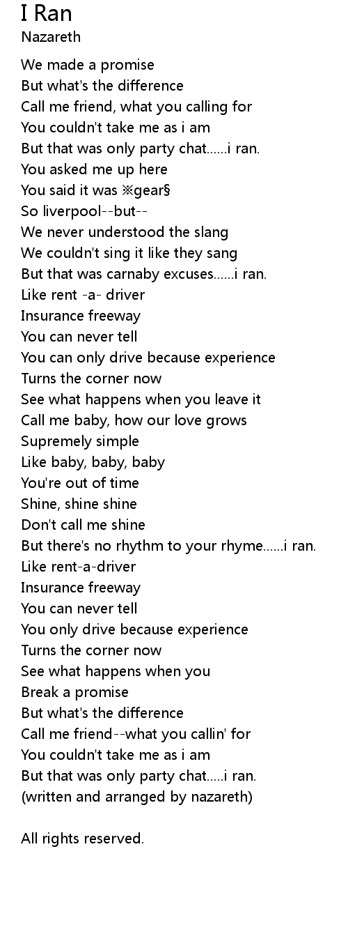 | But there' s no rhythm to your rhyme...... i ran. | |