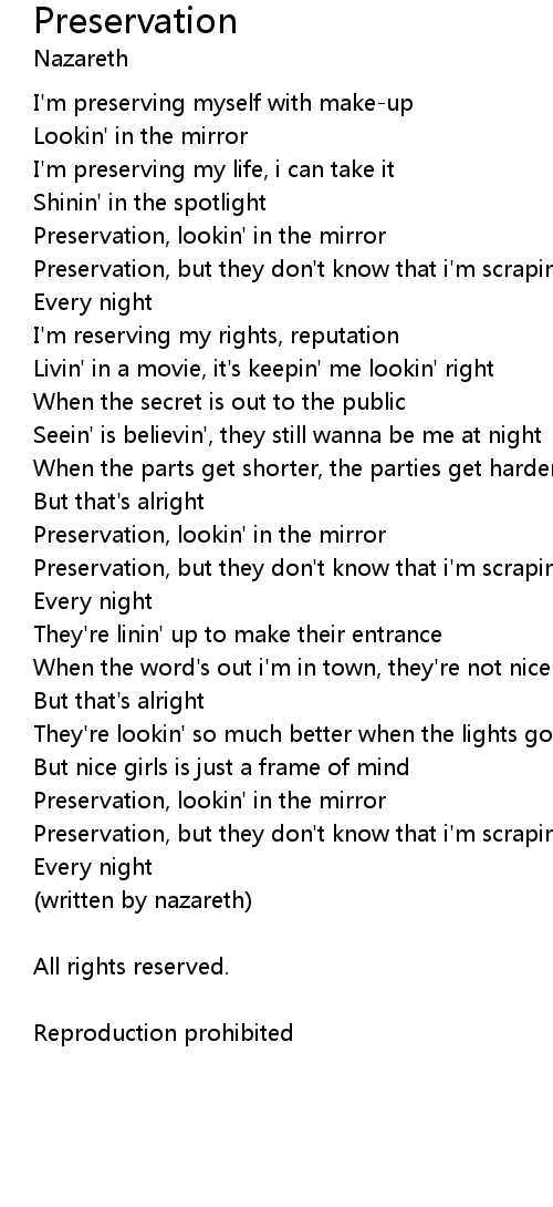 | Preservation, lookin' in the mirror | |