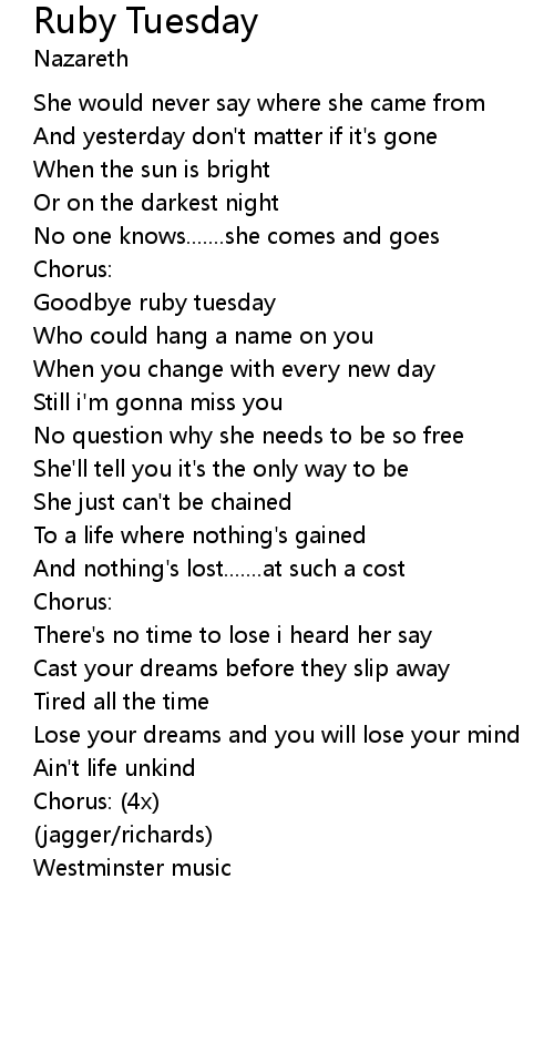 | Goodbye ruby tuesday | |
