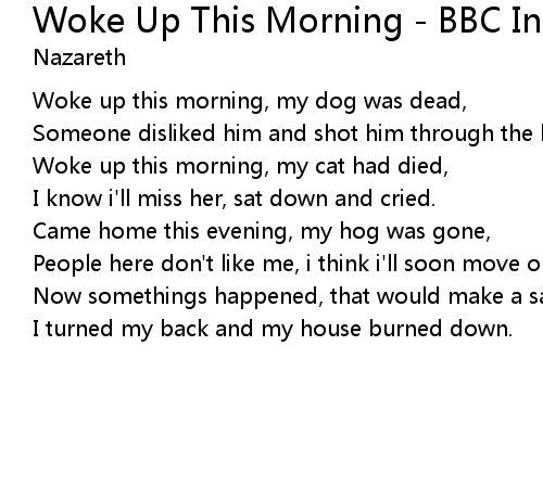 | Woke up this morning, my dog was dead, | |