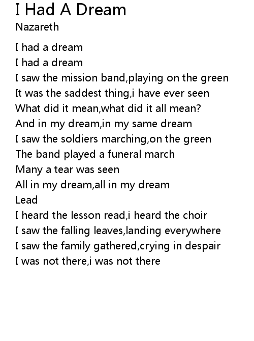 I Had A Dream 歌词