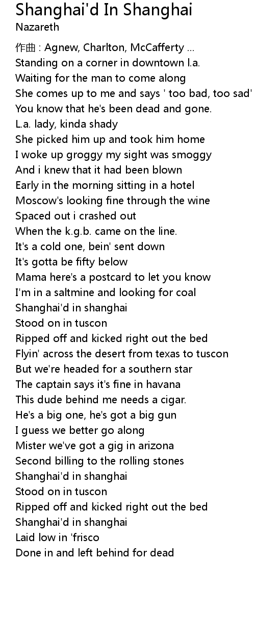 | 歌曲 | Shanghai'd In Shanghai |