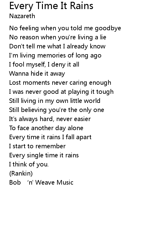 | 歌曲 | Every Time It Rains |