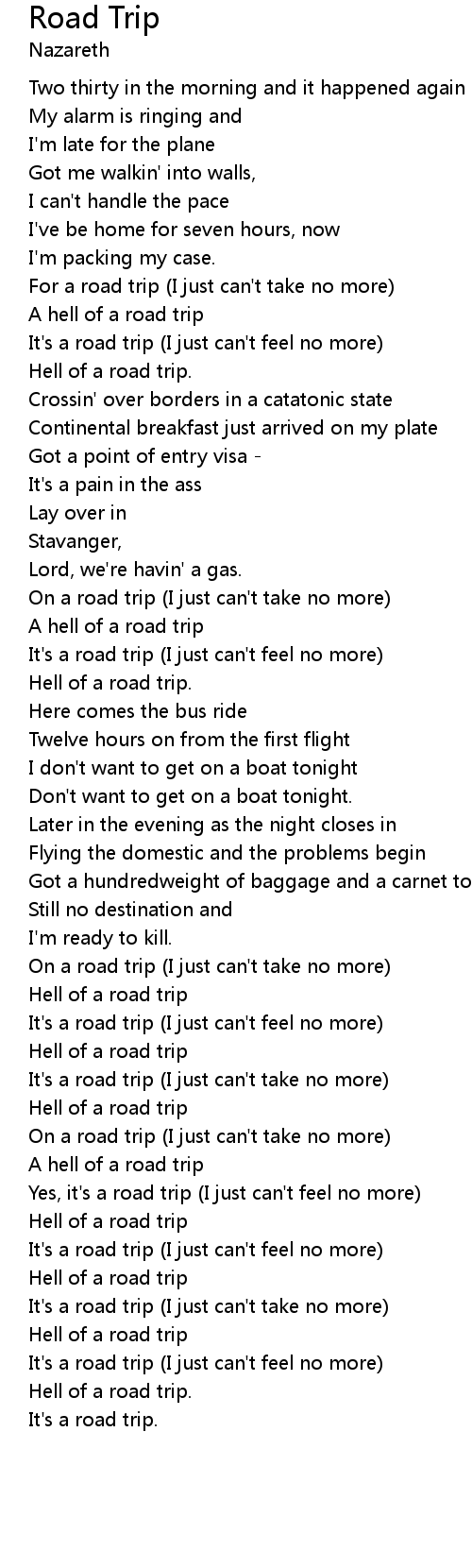 | Yes, it's a road trip (I just can't feel no more) | |