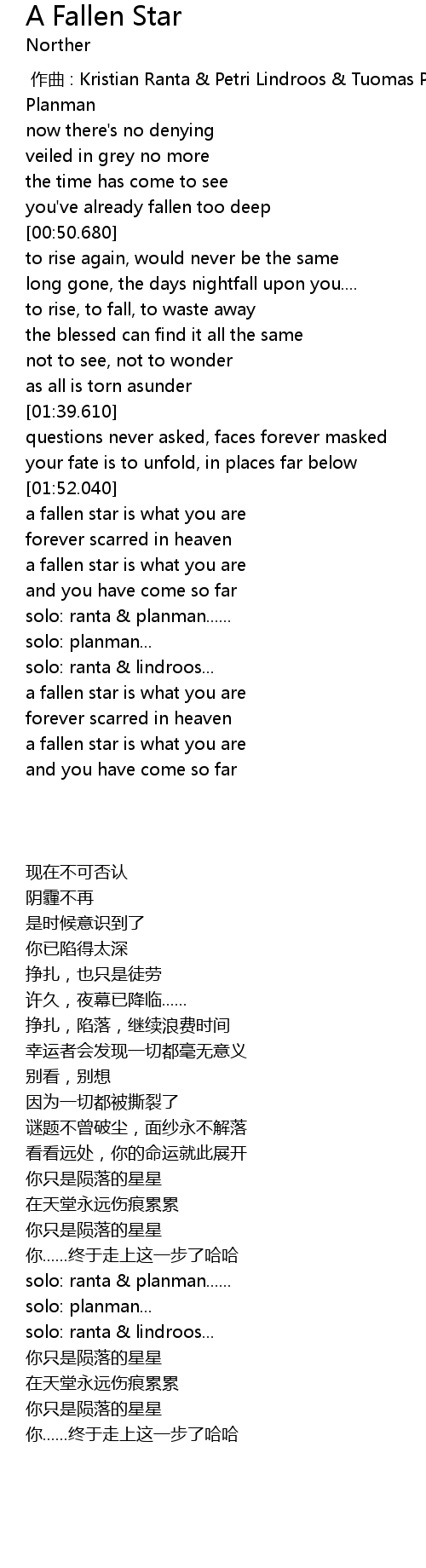 | 歌曲 | A Fallen Star |