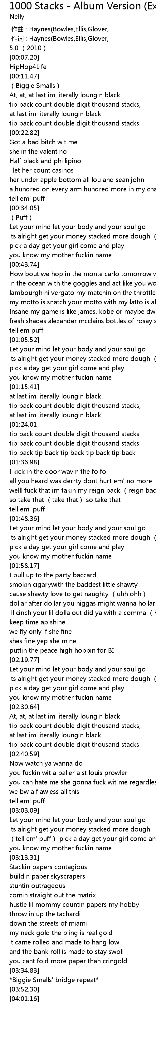 | 歌曲 | 1000 Stacks - Album Version (Explicit) |